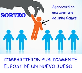 | FACILISIMO, solo tienes que compartir de manera PUBLICA la publicación(post) de Facebook en donde anunciamos que ya está disponible un nuevo videojuego, si ganas el sorteo entonces aparecerás en una aventura. Recuerda que siempre habrá un sorteo cada vez que publiquemos un nuevo videojuego así que oportunidades de ganar ... ¡habrán muchas! |
